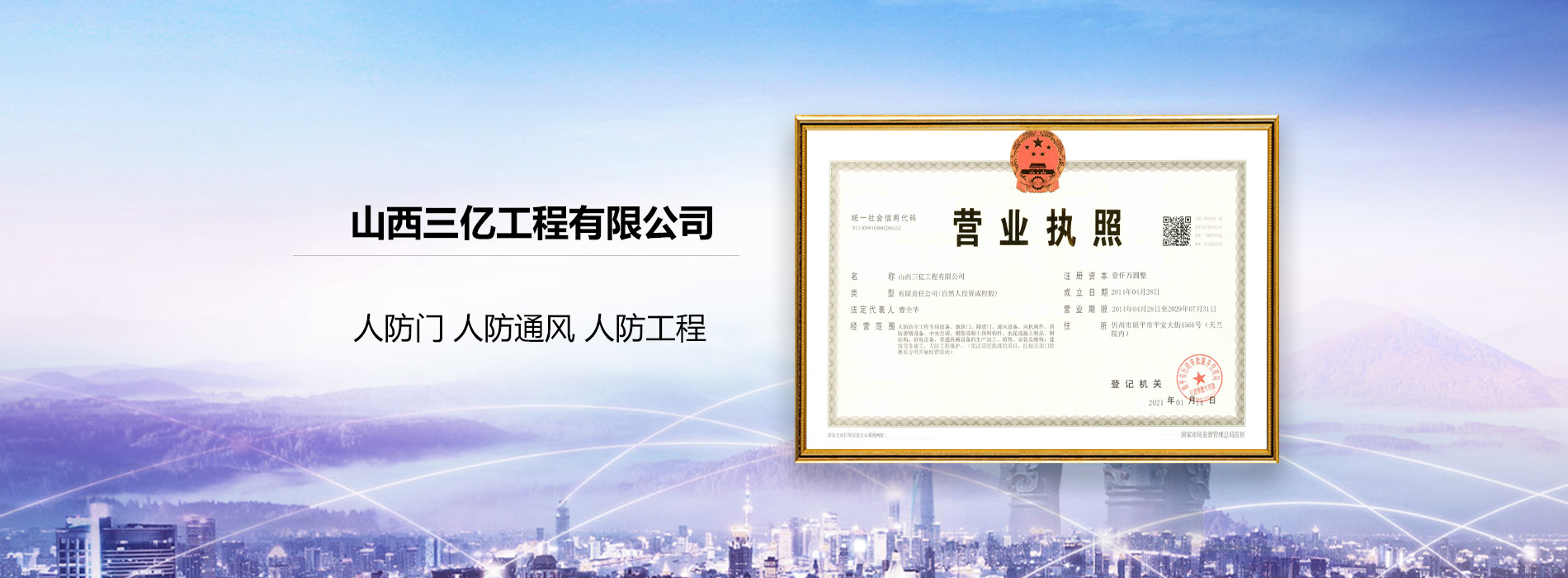 山西三億工程有限公司是經(jīng)人民防空辦公室批準(zhǔn)的人防工程的生產(chǎn)和定點(diǎn)安裝企業(yè)。公司及研發(fā).制造.銷(xiāo)售.服務(wù)于一體,產(chǎn)品通過(guò) ISO9001 質(zhì)量認(rèn)證,并列入《人民防空設(shè)備產(chǎn)品目錄》。
